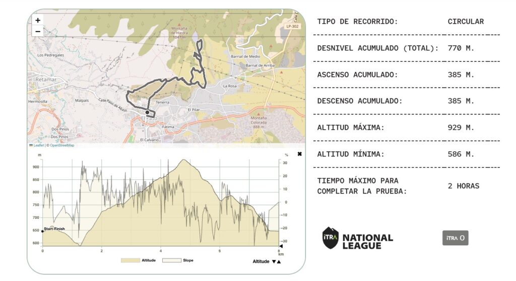 📸 Perfil y altimetría del recorrido corto de la Reventón Starter (8 km)